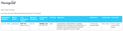 - Email alerts: Finally, our watch notice templates have been consolidated, so the EasyIP email templates now match the alerts sent from E-Watch and E-Services (see visual).