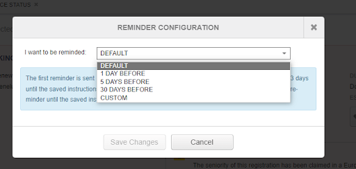 If no reminder preferences are chosen, EasyIP will continue to issue reminders according to the ‘default’ preferences of their Novagraaf office until the renewal deadline of the case(s). Of course, those reminders will cease as soon as the instructions are received.