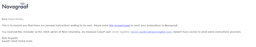 Where user settings are not synchronised with this reminder functionality, the following process has been set up to help clients to safeguard their renewals: