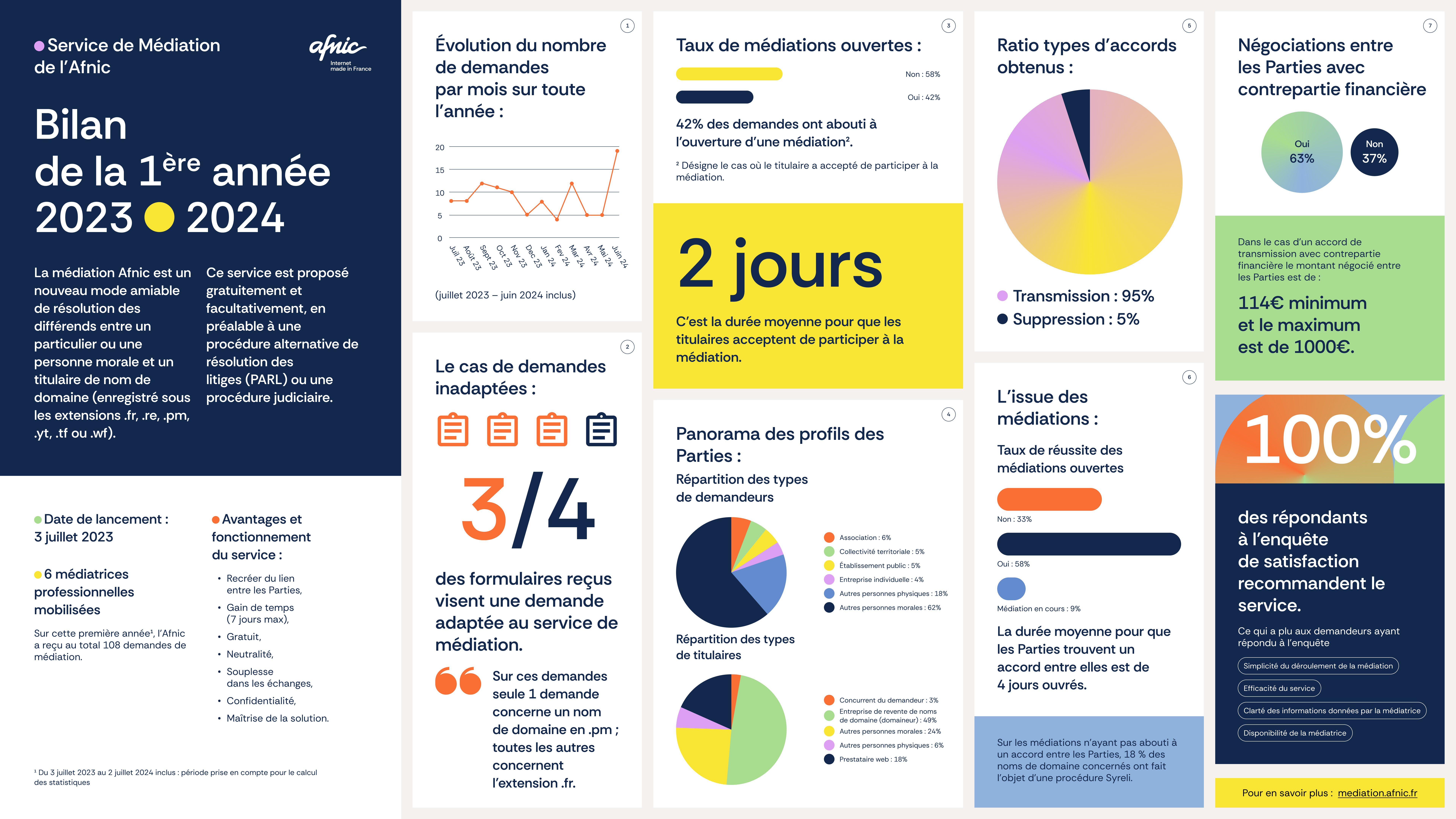 Le rapport dans son intégralité : https://www.afnic.fr/wp-media/uploads/2024/09/Afnic-Rapport-de-Mediation-2023-2024.pdf
