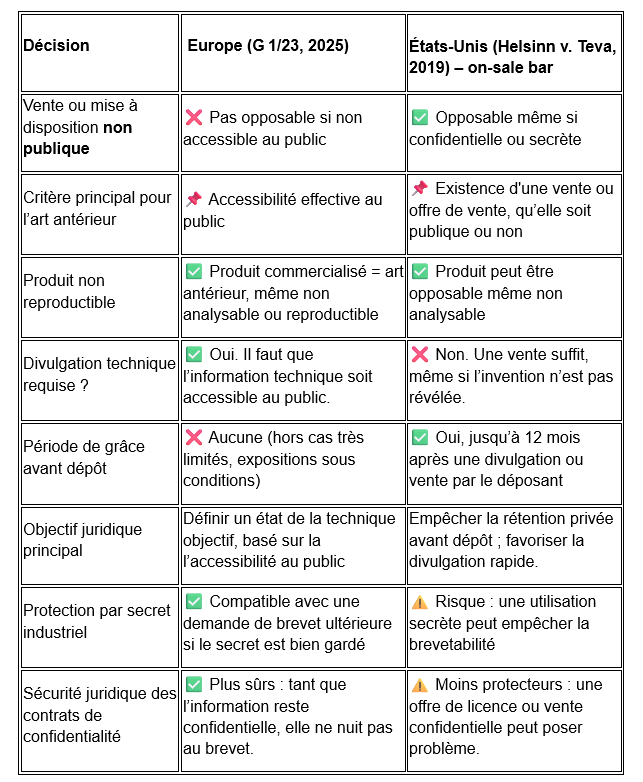 Un produit vendu ou mis à disposition équivaut désormais à un art antérieur, même s’il ne peut pas être analysé ni reproduit.
