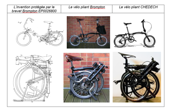 à propos d’un litige concernant le célèbre vélo pliant de la société Brompton qui était protégé par un brevet tombé dans le domaine public en 1999, à la société Get2Get qui, sous la marque CHEDECH, commercialise un vélo pliant selon l’invention et dont le design reprend de nombreux aspects de celui du vélo commercialisé par Brompton.